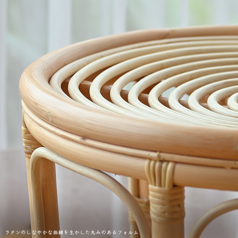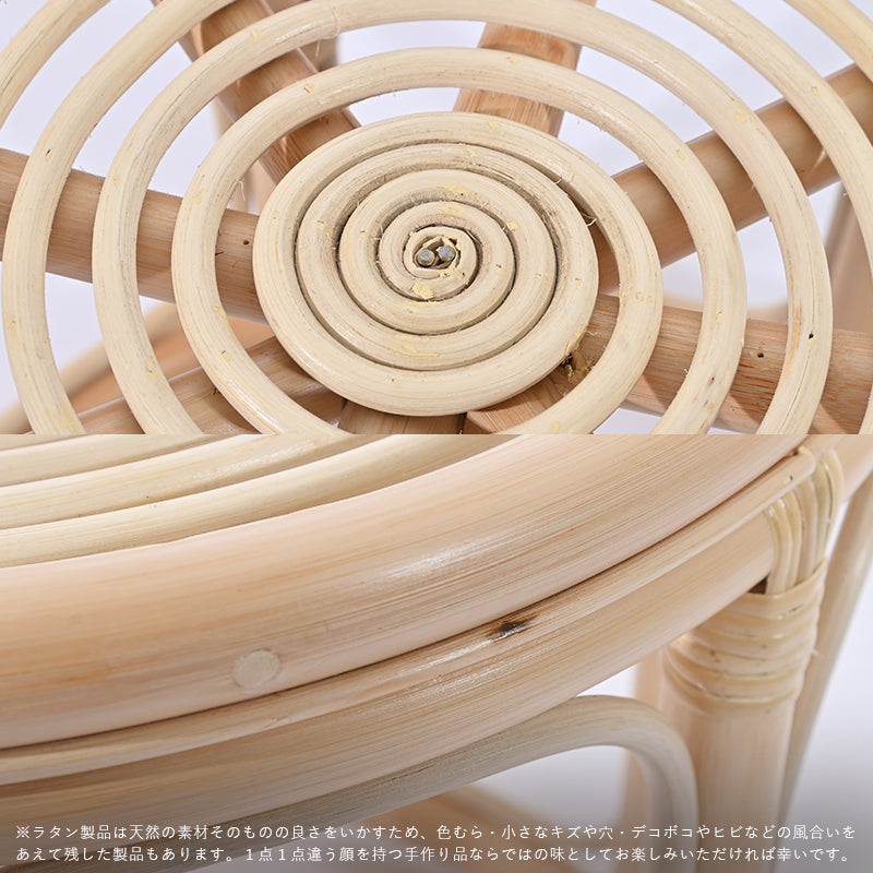 ラタンのしなやかな曲線を生かした丸みのあるフォルムと、天然の素材の質感で、お部屋の雰囲気をソフトに和ませます。